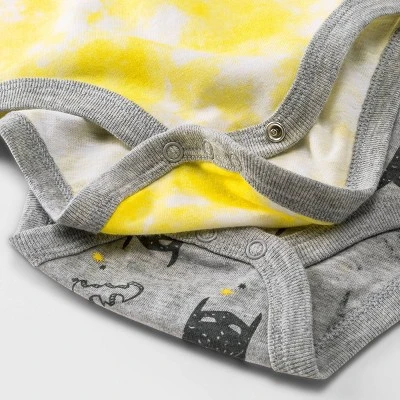 Dress up your darling in superhero-inspired style at home or on the go with the pieces from this 3-Pack Batman Bodysuit Set. This three-pack of short-sleeve bodysuits includes one in gray, one in yellow and one in black, each featuring Batman’s face and logo. The soft fabric construction offers comfort throughout their day and night. Designed with lap shoulders and crotch snaps for easy changing and dressing, the pieces in this bodysuit set allow easy pairing with a range of bottoms in their wardrobe to create a variety of looks.