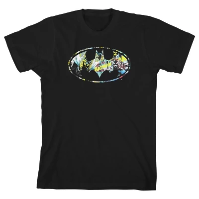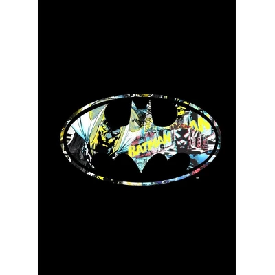 - GRAPHIC DESIGN: The design on this shirt is a silvery depiction of the classic Bat Symbol projected to the skies by Commissioner Gordon.