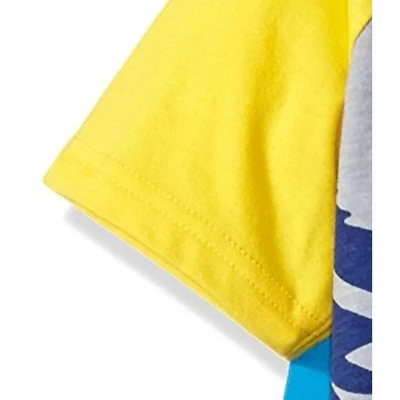 - DC Comics Justice League toddler boys cute and stylish short sleeve cosplay design graphic tee shirt with cool cape and awesome yellow raglan sleeves