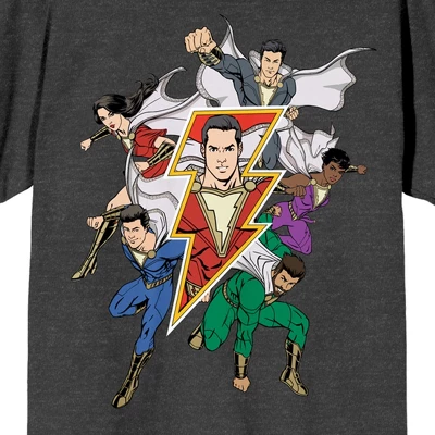 - CUSTOM DESIGNED graphic t-shirt features a big, colorful image of Shazam! comic book and movie characters that has been professionally printed to ensure long-lasting print quality