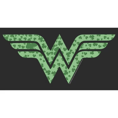 - This design features the iconic Wonder Woman logo filled with green shamrocks!